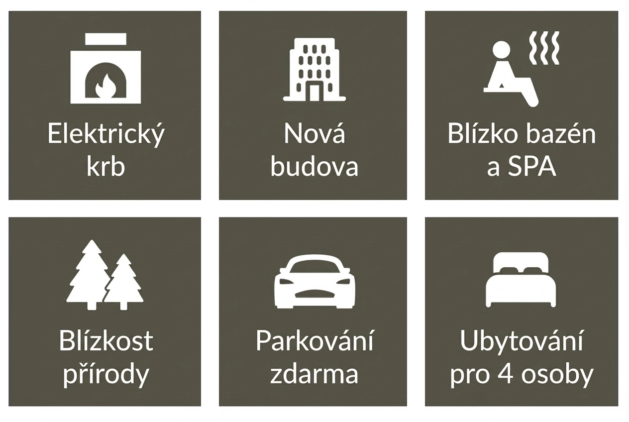 Atmosféru dotváří elektrický krb, u kterého můžete relaxovat.