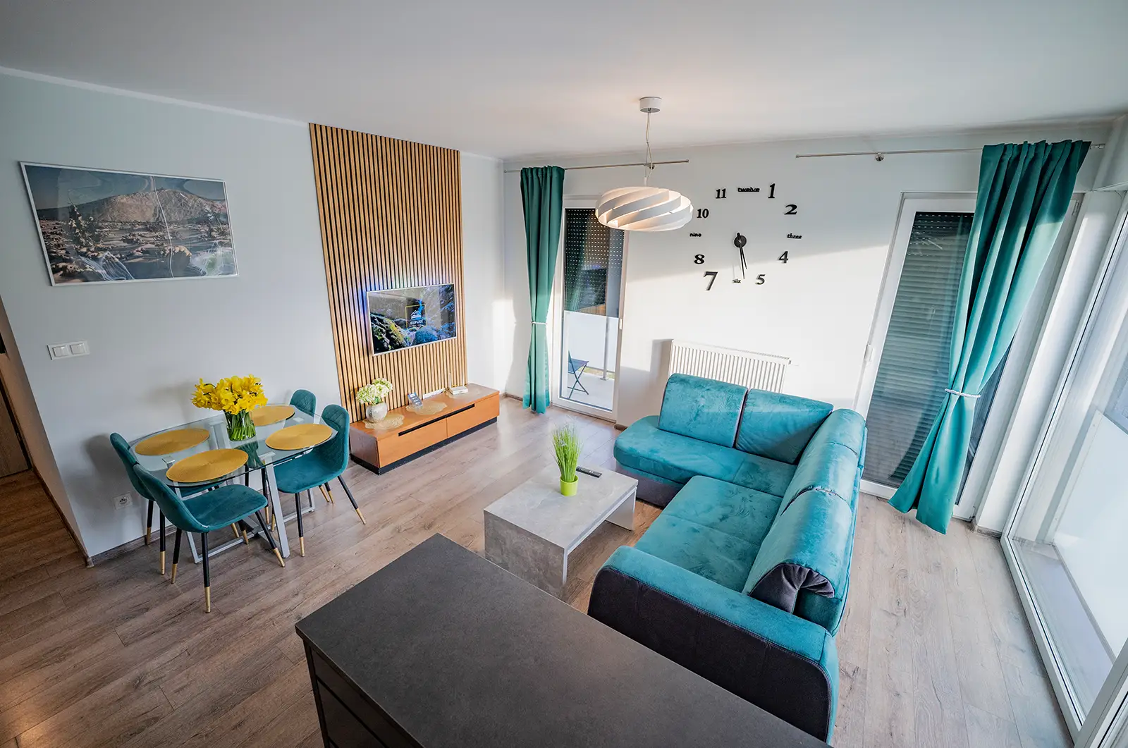 A stylishly furnished apartment for up to 6 people. Free Wi-Fi, free parking and a balcony with a beautiful view.