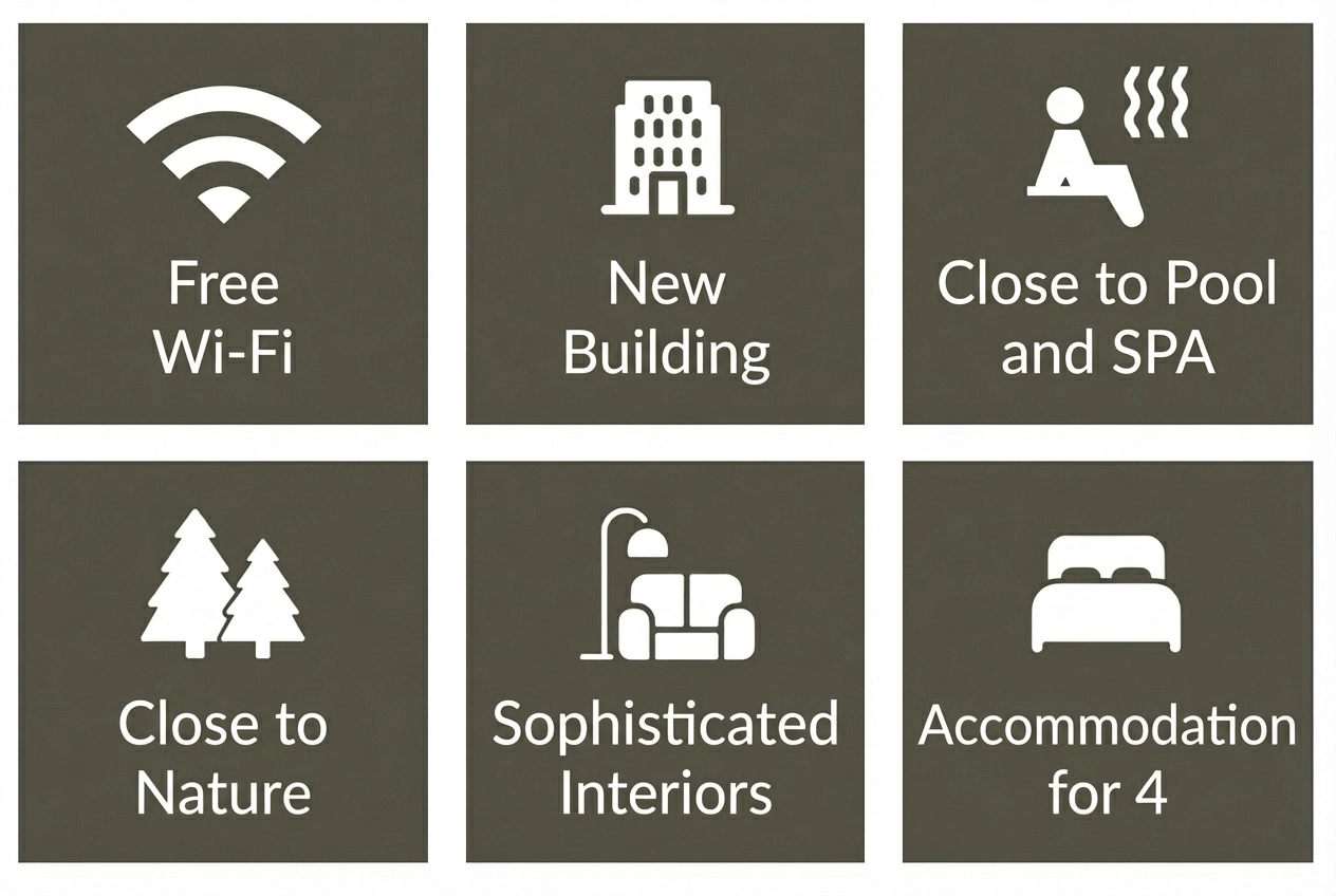 The apartment is stylishly and comfortably furnished and has all the necessary equipment. The apartment’s great asset is its comfortable atmosphere, cosiness and modern style.